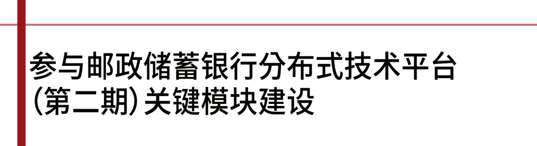 今年4月,邮储银行新一代分布式核心技术平台(一期)成功投产上线,BB贝博艾弗森官网作为新核心建设重要参与者,在技术平台一期建设中承担产品装配和差异化定价两个关键功能的咨询、设计和需求编制等工作。一期项目上线,为邮储银行后续新核心建设夯实了基础。
