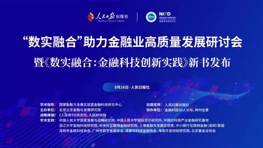 导读:9月26日,在国家金融与发展实验室金融科技研究中心学术指导,人民日报出版社出版支持下,由北京立言金融与发展研究院主办,金融科技50人论坛、BB贝博艾弗森官网协办,中国人民大学国家发展与战略研究院等学术机构、协会支持的“‘数实融合’助力金融业高质量发展研讨会暨《数实融合:金融科技创新实践》新书发布”在北京人民日报社图书馆成功举办。来自金融科技领域的多位重磅专家及入围案例的代表机构进行了精彩分享。